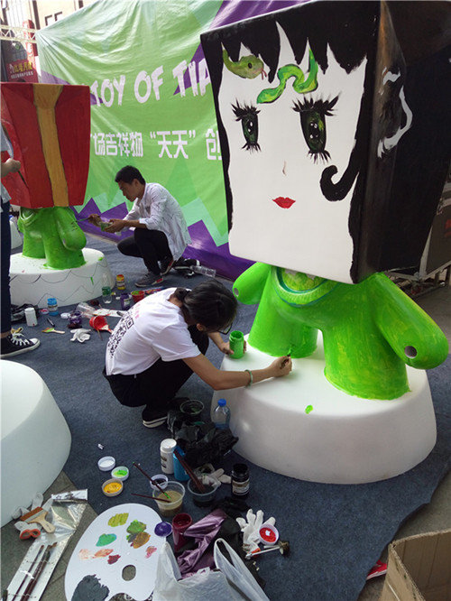 以“年輕、健康、活力、全新”為主題,信陽天潤廣場推出5周年店慶吉祥公仔“天天”,并在店慶當天舉辦了吉祥公仔藝術涂鴉展活動。